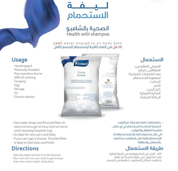 To use, simply add a few drops of water to the Ficomed fiber, rub gently to create foam, and apply it to the desired body area for cleaning. It offers an easy, hygienic, and time-saving solution for maintaining freshness and personal care anywhere, anytime.